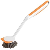 (More customer reviews)This cool looking dish brush worked great the first time I used it. Then, quickly started not working so well. You may be asking, how could a brush not work? Well, I'll tell you. The orange scraper worked wonderfully the first time I used it. But, after that it became more and more flexible to the point where it did no good. Then, to emphasize its worthlessness, it tore and peeled off within a week of purchase. The bristles, too, were nice and stiff when first used. Too stiff. I figured they'd soften with use. It did and started working well. Then, like the scraper, became too soft. So, I'm just going to re-purpose this brush as a vegetable brush. I bought a $2 brush from Wally-World (you know where I'm talking about) and it has picked up the job beautifully. I've always trusted Bissell but I guess they don't do dish brushes all that well.
